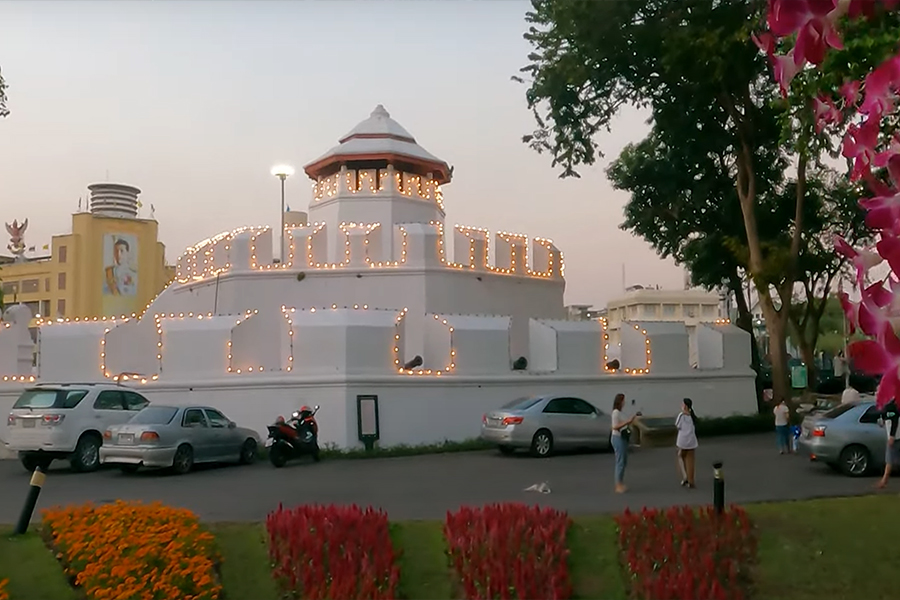 โลหะปราสาทและพลับพลามหาเจษฎาบดินทร์ อยู่คนละฝั่งถนนมหาไชยกับป้อมพระกาฬ Photo by Dithichaya