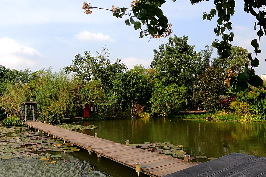 สะพานทอดข้ามบึงกว้าง เป็นทางเชื่อมระหว่างร้านอาหารและ Coffee Shop Photo by Dithichaya