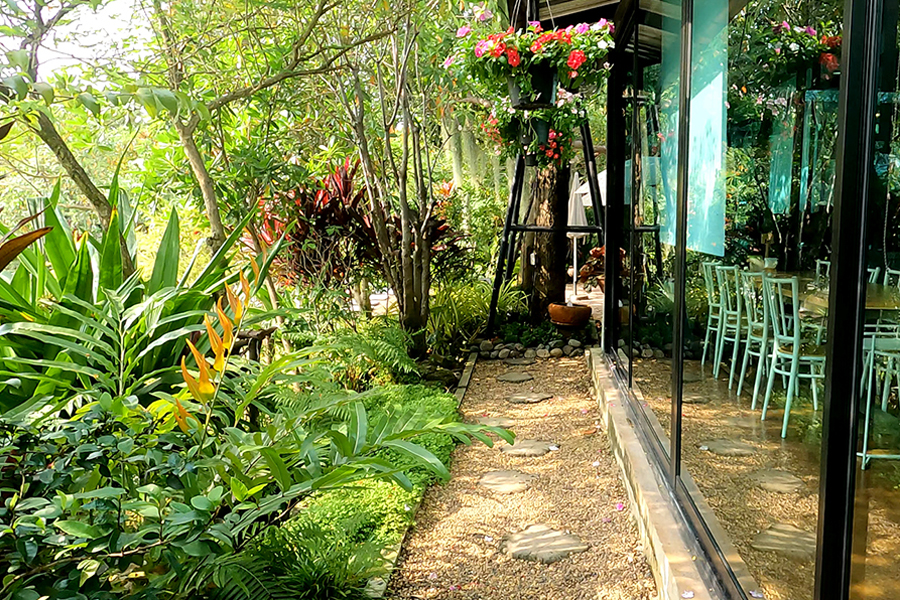 สวนริมทางข้างห้องอาหาร Photo by Dithichaya