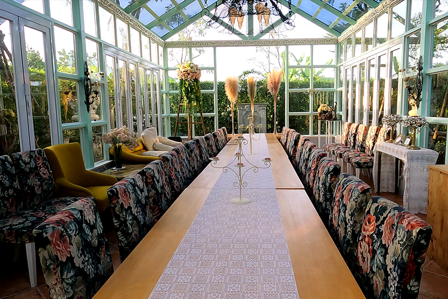 เรือนกระจกในสวนสำหรับจัดเลี้ยงแบบกลุ่ม Photo by Dithichaya