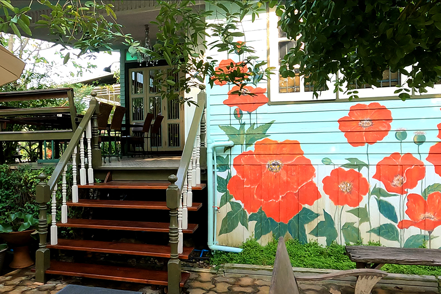 ทางขึ้นร้านกาแฟที่ติดถนนใหญ่อีกด้านหนึ่ง Photo by