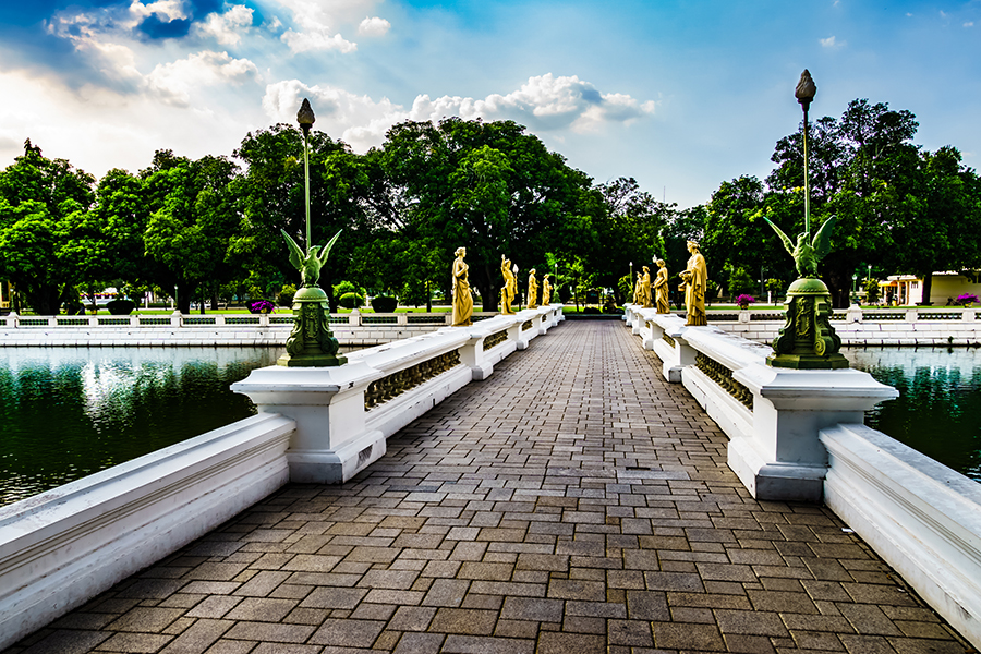 สะพานข้ามบึงน้ำประดับด้วยประติมากรรมโรมัน Photo by DerekTeo