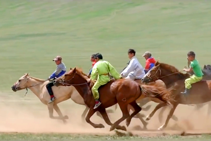การ ‘แข่งขี่ม้า’เป็นหัวใจของชาตินักรบมองโกที่ยังคงสานต่อมาถึงทุกวันนี้ สนามประลองคือ ทุ่งหญ้าขนาดใหญ่นอกเมือง ผู้ร่วมแข่งขันมีทั้งผู้ชาย ผู้หญิง และเด็กผู้ชายเล็กๆ ทุกคนต่างมีท่วงท่าการทรงตัวและมีจังหวะในการควบม้าอย่างเชี่ยวชาญและสง่างาม เห็นแล้วอดทึ่งไม่ได้ ว่ากันว่า คนมองโกขี่ม้าเป็นก่อนจะเดินได้เสียอีก
