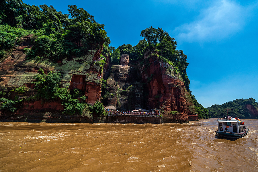 ขยับออกจากเมืองไกลอีกนิดราว 2 ชั่วโมงรถบัส หรือ 1 ชั่วโมงรถไฟไฮสปีด(ต้องต่อแท็กซี่) คุณก็จะได้พบกับความยิ่งใหญ่ของ ‘พระพุทธรูปเล่อซาน’ ซึ่งแกะสลักจากหินผาภูเขา สร้างขึ้นในสมัยราชวงศ์ถัง โดยใช้เวลาแกะสลักถึง 90 ปีกว่าจะแล้วเสร็จ มีความสูงกว่า 70 เมตร ตั้งตระหง่านเหนือจบจุดบรรจบของแม่น้ำ 3 สาย ตามประวัติแล้วจุดบรรจบของแม่น้ำนี้มักเกิดเหตุเรือล่มบ่อยครั้ง หลวงพ่อวัดหลิงหยูน(วัดข้างแม่น้ำหนานหมิ่น) จึงดำริให้มีการสร้างพระพุทธรูปแกะสลักขึ้นเพื่อไว้เป็นเครื่องเตือนใจชาวเรือ และให้ปกปักรักษาผู้เดินทาง วิธีมาสักการะทำได้ทั้งเดินลัดเลาะแนวเขา หรือซื้อตั๋วล่องเรือก็จะได้มุมมองใหม่ๆ ในการบันทึกภาพ