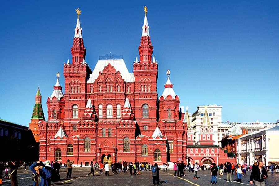 | (2) อาคาร State Historical Museum ที่จัตุรัสแดง พิพิธภัณฑ์ประวัติศาสตร์มอสโก นั้นสร้างขึ้นมาตามพระบัญชาของ จักรพรรดิอเล็กซานเดอร์ที่ 2เปิดให้เข้าชมเมื่อช่วงปลายศตวรรษที่ 19ในวันเเรกตรงกับวันราชาภิเษกของจักรพรรดิอเล็กซานเดอร์ที่ 3สิ่งของที่จัดเเสดงในพิพิธภัณฑ์นั้นได้มาจากการบริจาคของบรรดาพ่อค้า เเละชนชั้นสูงจำนวนมาก ทำให้พิพิธภัณฑ์เเห่งนี้จัดว่ามีโบราณวัตถุจำนวนมากอีกเเห่งของยุโรป ตัวอาคารนั้นมีการก่อสร้างในสถาปัตยกรรมเเบบโกธิค เเละโดดเด่นด้วยหอสูงที่งดงามน่าเกรงขาม |