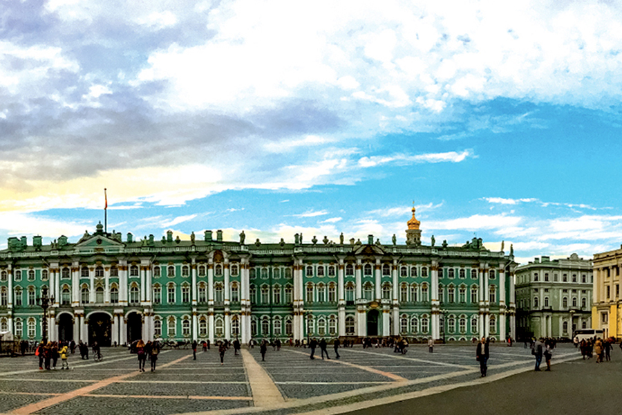 | (3) อาคารพิพิธภัณฑ์เฮอร์มิเทจ (Hermitage Museum)และพระราชวังฤดูหนาว เมืองเซนต์ปีเตอร์สเบิร์ก ประเทศรัสเซีย สร้างถวายพระเกียรติแด่กษัตริย์อเล็กซานเดอร์ที่ 1 ที่พระองค์ทรงชนะสงครามนโปเลียนของฝรั่งเศส เป็นที่เก็บรวบรวมของล้ำค่าจากทั่วโลกกว่า 3 ล้านชิ้น รวมทั้งภาพเขียนของจิตรกรเอกของโลก เช่น ลีโอนาโด ดาวินซี, ปีกัสโซ่, แรมบันด์, แวนโก เป็นต้น นอกจากนี้ยังมีวัตถุล้ำค่าต่าง ๆ เช่น นาฬิการูปนกยูง แจกันมาลาไคท์ ศิลปวัตถุอียิปต์โบราณ และมัมมี่ ประกอบด้วยห้องต่างๆ มากกว่า 1,050 ห้อง ณ สถานที่แห่งนี้เคยใช้เป็นที่ประทับรับรองการเสด็จเยือนของรัชกาลที่ 5 ของไทยในการเจริญสัมพันธไมตรีไทย-รัสเซีย พร้อมทั้งทรงร่วมฉายพระรูปกับพระเจ้าซาร์ นิโคลัสที่ 2 ของสหพันธรัฐรัสเซีย |