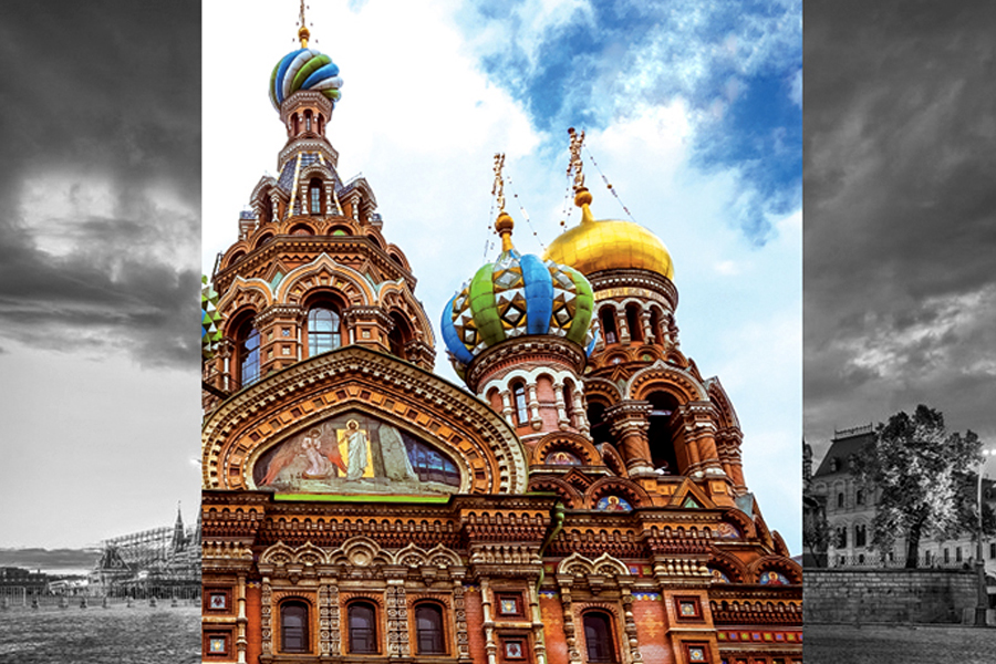 | (5) โบสถ์แห่งหยดเลือด สร้างให้เป็นเกียรติแด่พระเจ้าซาร์อเล็กซานเดอร์ที่ 2 ผู้ประกาศเลิกทาส ด้วยความหวังดีต่อประชาชน ปรากฏว่าชาวรัสเซียไม่เข้าใจ เพราะหลังเลิกทาส ชาวนากลับมีความเป็นอยู่ที่จนลง เป็นผลให้พวกชาวนารวมตัวกันว่าแผนปลงพระชนม์ โดยส่งหญิงชาวนาผู้หนึ่งติดระเบิดพลีชีพวิ่งเข้ามาขณะพระองค์เสด็จผ่าน ต่อมาบริเวณถนนที่เกิดเหตุนั้นถูกสร้างโบสถ์ครอบไว้ กลายเป็นโบสถ์หยดเลือดมาจนถึงทุกวันนี้ ด้านในของโบสถ์มีความละเอียดที่ยิ่งใหญ่อลังการ บรรยากาศเต็มไปด้วยความสงบ มีลวดลายของกระเบื้องโมเสกอันโด่งดังน่าประทับใจ เมื่อมาถึงรัสเซียก็ต้องมาดู ไอคอน ให้ได้ ชาวยุโรยังยกย่องว่าโบสถ์แห่งหยดเลือดเป็นเอกลักษณ์ของรัสเซียเลยทีเดียว กระเบื้องโมเสกที่ประดับอยู่บนผนังบนพื้นที่รวมกว่า 7,500 ตารางเมตร โดยมีการแสดงภาพในศิลปะที่หลากหลายรวมถึงแบบสมัยใหม่นิยมและแบบไบแซนไทน์ กระเบื้องโมเสกอันวิจิตรเหล่านี้แสดงเรื่องราวต่างๆ จากคัมภีร์ไบเบิล ลองมองหาภาพพระเยซูทรงถือพระวรสาร ซึ่งถอดแบบมาจากงานของจิตรกร นิโคไล ฮาร์ลามอฟ เมื่อมองไปที่บนหลังคาโดมของโบสถ์ จะมองเห็นพระคริสต์ทอดพระเนตรลงสู่โบสถ์เบื้องล่าง นอกจากนี้ ยังมีภาพของ อเล็กซานเดอร์ เนฟสกี วีรบุรุษคนสำคัญของเซนต์ปีเตอร์สเบิร์กและรัสเซียทั้งประเทศ ในภาพโมเสกอันยิ่งใหญ่ภาพหนึ่งได้อีกด้วย |