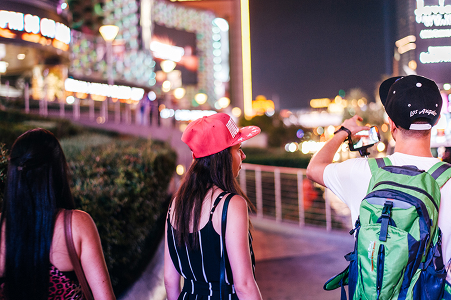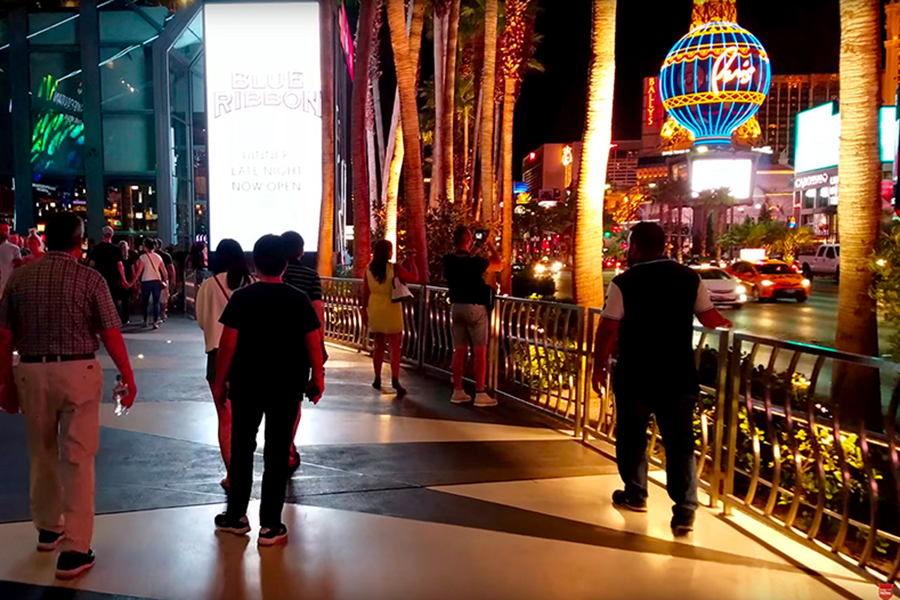 ฝูงชนเดินไหลปะปนไปบนถนน Strip นอกจากแสงสีเสียงที่อลังการดุจดาวล้านดวงแล้ว วณิพกตามท้องถนนนี่ล่ะคือตัวแปรเพิ่มความสนุกเป็นดับเบิล ทุกการแสดงไม่ว่าจะเป็นมายากล สายแดนซ์ มาสคอตจากการ์ตูนต่างๆ หรือ เหล่าฮีโร่พิทักษ์โลกล้วนปรากฏตัวให้คุณทักทายถ่ายรูปคู่หรือแลกไลน์ สาวๆ นุ่งน้อยห่มน้อย จนกระทั่งโนบราแบบสาววัยดึกที่ยืนจังก้าอวดปทุมถันหรากับจีสตริงตัวจิ๋ว ยั่วยวนให้บุรุษเพศชายทั้งหลายมาแลกเงินตราด้วยการชักภาพคู่ ทุกสิ่งล้วนเป็นเรื่องตื่นเต้นของคนต่างวัฒนธรรมเช่นเราได้ตลอดเวลา