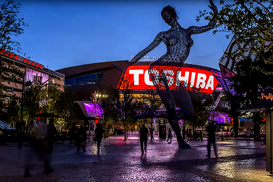 T-Mobile Arena ผุดขึ้นตรงด้านหลังของ New York – New York Hotel & Casino. Photo: https://www.youtube.com/watch?v=SasISIBhyl0
