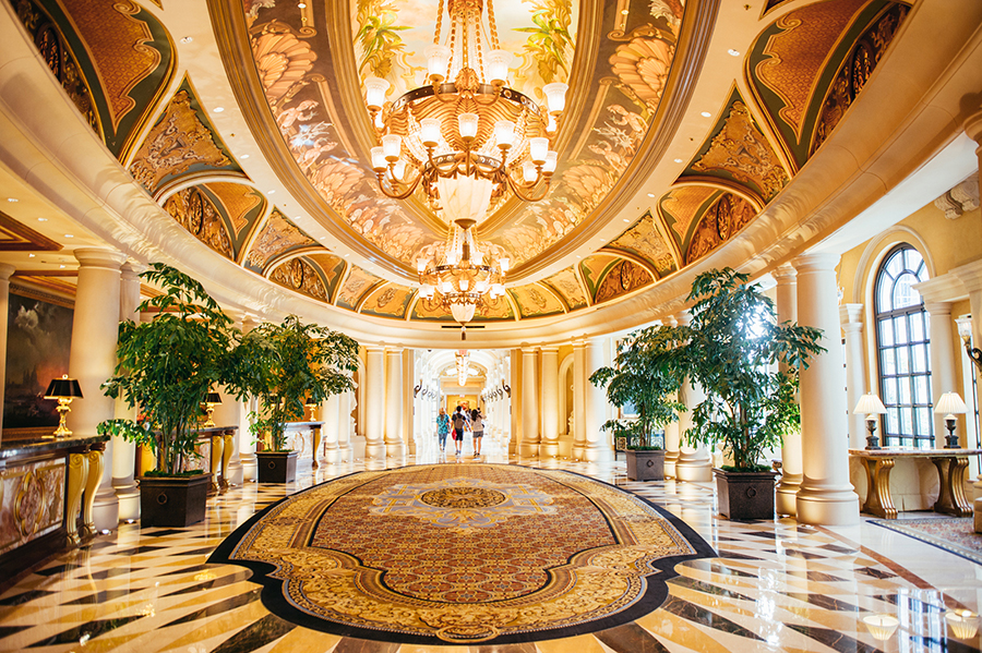 ที่ใหญ่โตอลังการสุดคือ Caesars Palace โดดเด่นในสไตล์อาณาจักรกรีกและโรมันมีส่วนช็อปปิ้งแบรนด์เนมสุดหรู The Forum Shop คนชอบสวนดอกไม้แนะนำให้พัก Bellagio Resort & Casino สถานที่ถ่ายทำ Ocean Eleven ซึ่งนอกจากจะด้านหน้าจะจัดโชว์น้ำพุเริงระบำยามเย็นถึงค่ำ ด้านในยังมีสวนธรรมชาติ ตกแต่งหมุนเวียนเปลี่ยนไปตามเทศกาลต่างๆ การันตีความประทับใจในแบบเดียวกับรักแรกพบ