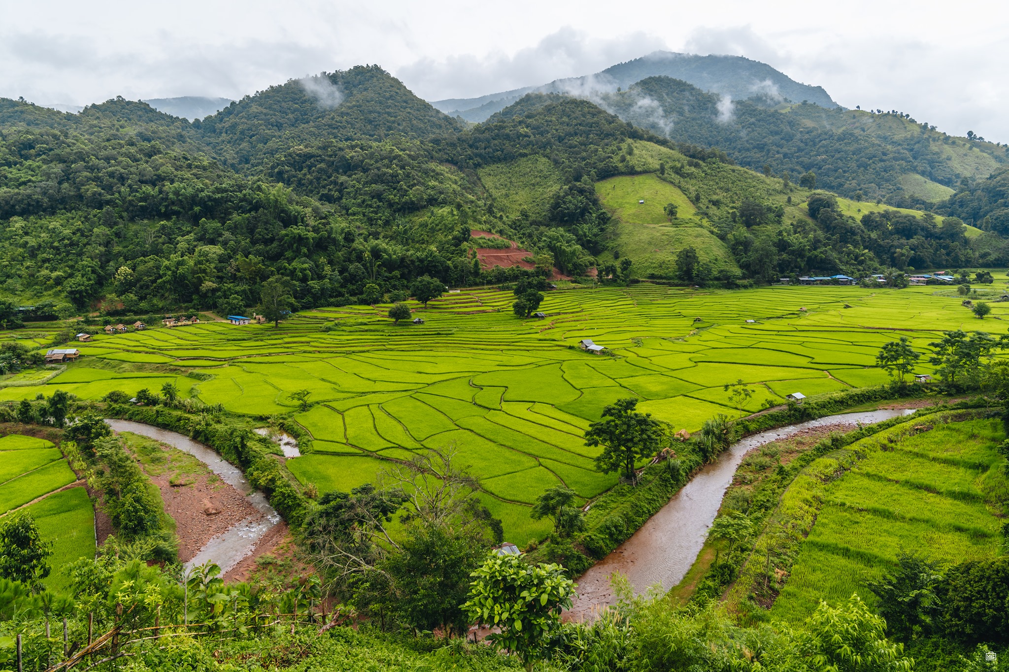 ท่องเที่ยวหน้าฝน ทำให้ได้สัมผัสธรรมชาติ ต้นไม้แตกกิ่ง แตกช่อชูใบ พริ้วไหว ออกดอก ชูช่อสองฝั่งทาง ระหว่างขับรถมาน่าน