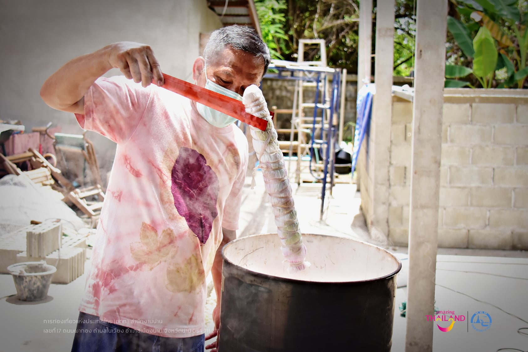 มา น่าน มาเรียนรู้การอุ๊กผ้า (บ่มผ้า) ด้วยใบไม้ จากธรรมชาติใกล้ตัว